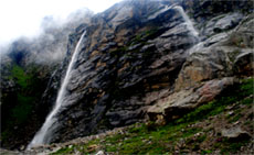 Vasudhara Falls is a natural waterfall situated near Badrinath, the temple dedicated to Vishnu in Uttarakhand, India. It is a 5 km trek from Mana village (3 km from Badrinath). Mana is accessible by road from Badrinath. The trek starts from Mana village, along a stoned path. The first 2–3 kilometres are comparatively easy to walk but after that the road is quite steep. There are no villages or shops along the route. Closely associated with the legendary Pandavas, Vasundhara Falls in the Mana village is merely four kilometers away from the main town. Encircled by lofty mountain peaks, the falls unfurls a haunting site that lasts for a lifetime.