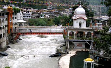 Manikaran is 45 km. from Kullu. Manikaran lies in the Parvati valley of Kullu district. The spring are situated near the bank of Parbati river. These are confined to several groups of hot water springs emerging at various locations spreading upto a distance of about 1.3 kms. along the river from the old bridge to Brahmaganga. The springs at Manikaran come out to surface with pressure and are very hot. There is no sulphur or iron mixed in the waters, but it is said to be radio active.