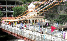Gurdwara Shri Guru Nanak Dev Ji, also called Gurdwara Manikaran Sahib is situated in Manikaran, in Kullu District, 45 KM away from Kullu. The place was visited by Guru Nanak Dev during his travels. The serene location and the seemingly mysterious hot springs made Manikaran (Kullu) a place of pilgrimage in earlier times. Guru Nanak, the first Guru of the Sikhs, visited this place to spend time in meditation. A gurdwara that was built to commemorate his visit, is now a place of pilgrimage for the Sikhs.