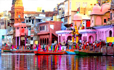 The Vishram Ghat is lined with elegant temples and some of Mathura's most important shrines are found here - the Mukut Temple, Radha-Damodar, Murli Manohar, Neelkantheshwar, Yamuna-Krishna, Langali Hanuman and Narasimha temples. The baithak of the great Vaishnava Saint, Mahaprabhu Ballabha Chaitanya, is also nearby.