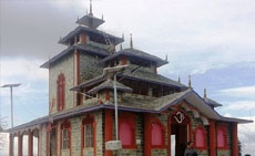 | Surkhanda Devi : Surkhanda Devi Temple at 10,000 feet, 35 km down the Mussoorie - Tehri road. Perched on a peak, the temple demands a stiff two-km climb form devotees. The temple, goes the legend, was built on the site where the head of Shiva consort (Shiva is the destroyer in the Hindu trinity) fell after it was chopped off to stop Shiva terrifying dance of death that was shaking the universe to its very core. |